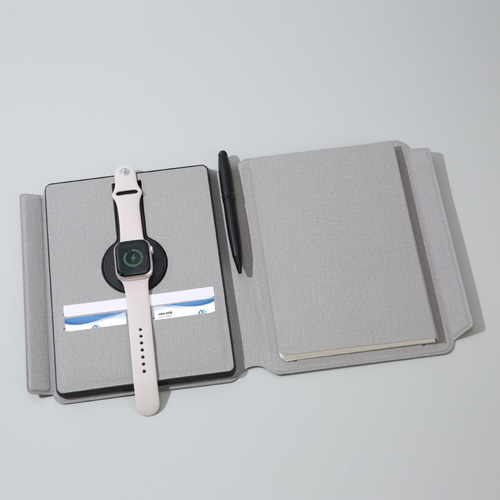 This unique A5 portfolio notebook is crafted from recycled PU material, combining sustainability with a sleek executive finish. It features a built-in 10,000mAh MagSafe power bank integrated into a magnetic flap closure, delivering seamless and efficient wireless charging.