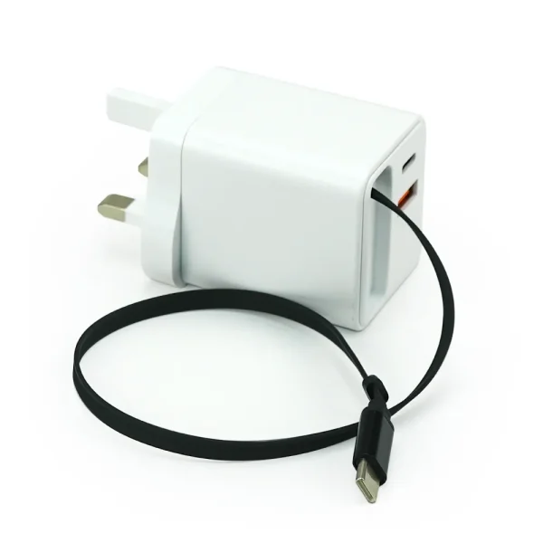 Power up faster with this 80W GaN fast charger featuring a retractable Type-C cable, dual ports, and compact design. Perfect for travel, office use, and corporate gifting in Dubai & UAE.