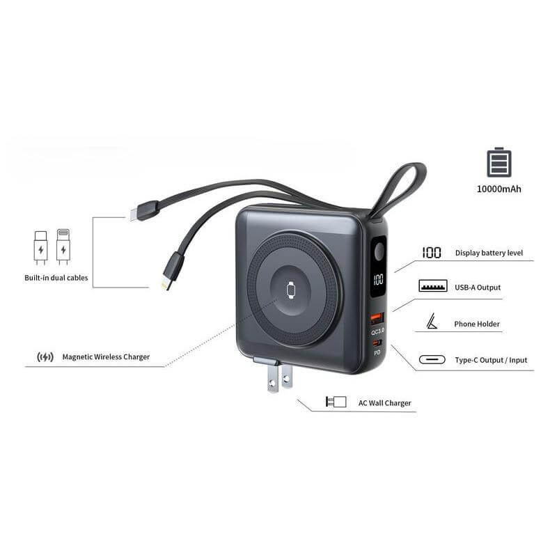 • Built-in Type-C & Lightning Cables – No extra cables needed