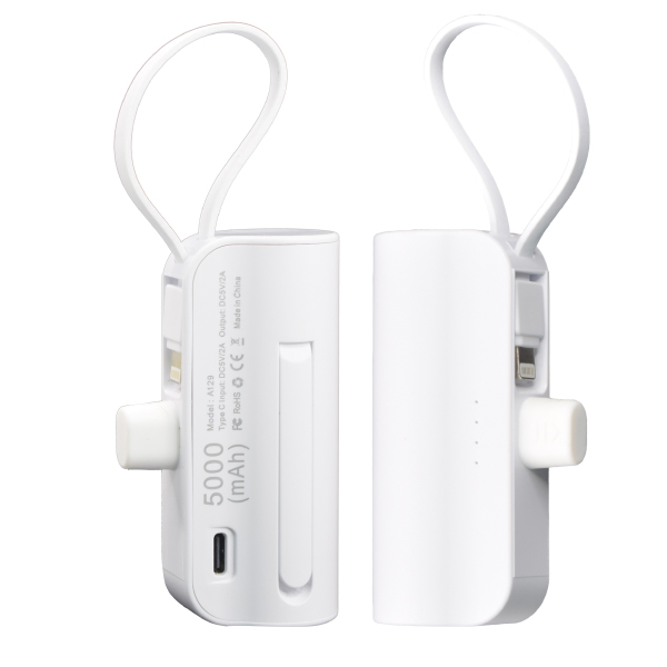 Compact 5000mAh mini power bank with built-in cables. Perfect for travel & budget corporate giveaways in Dubai & UAE.
