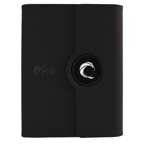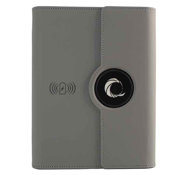 Luxury document folder with wireless charging, power bank & mobile holder. Ideal for executive corporate gifts in Dubai & UAE.